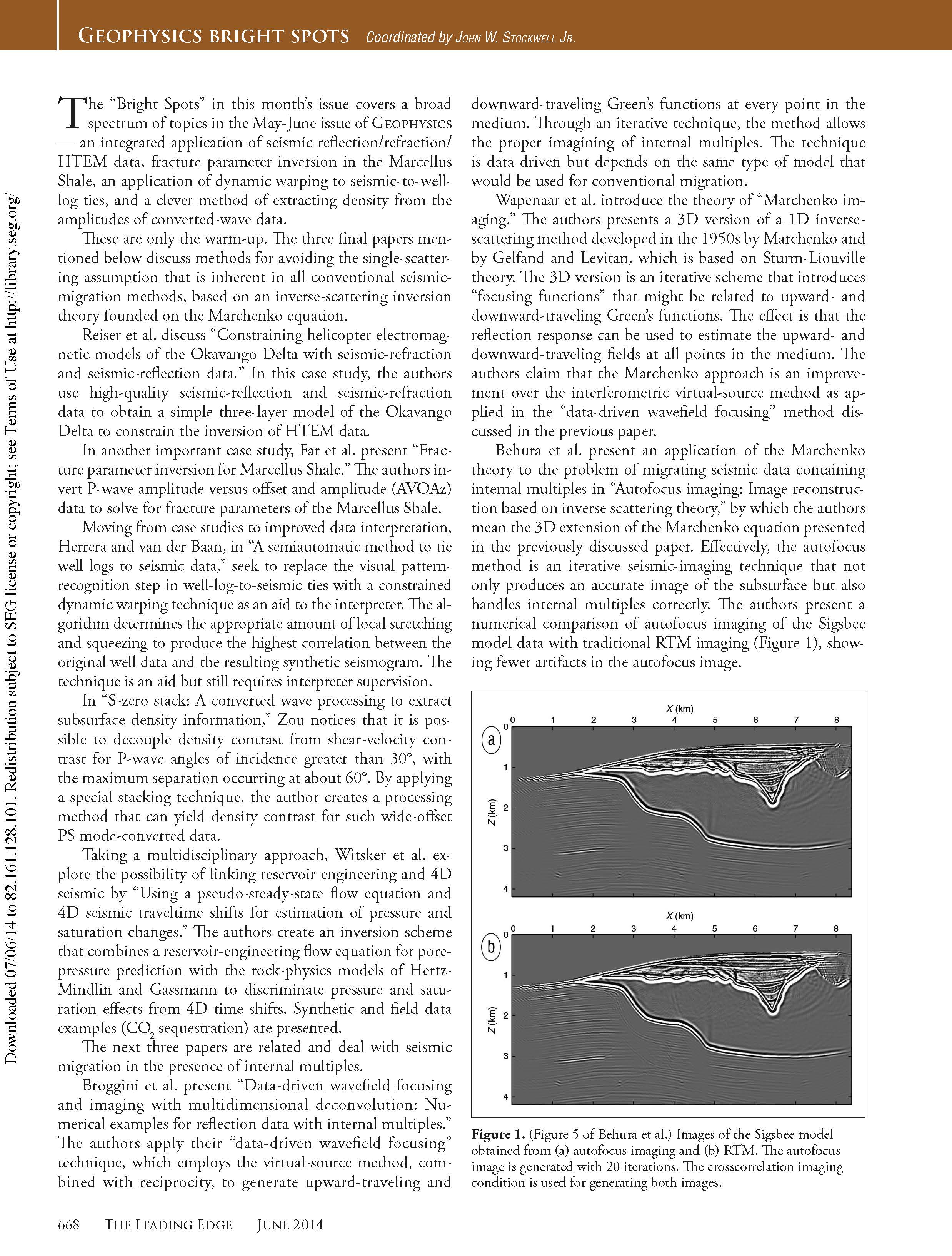 Best journal paper award: Van der Neut, J., and Wapenaar, K., 2015, Point-spread functions for interferometric imaging: Geophysical Prospecting, Vol. 63, 1033-1049. pdf-file