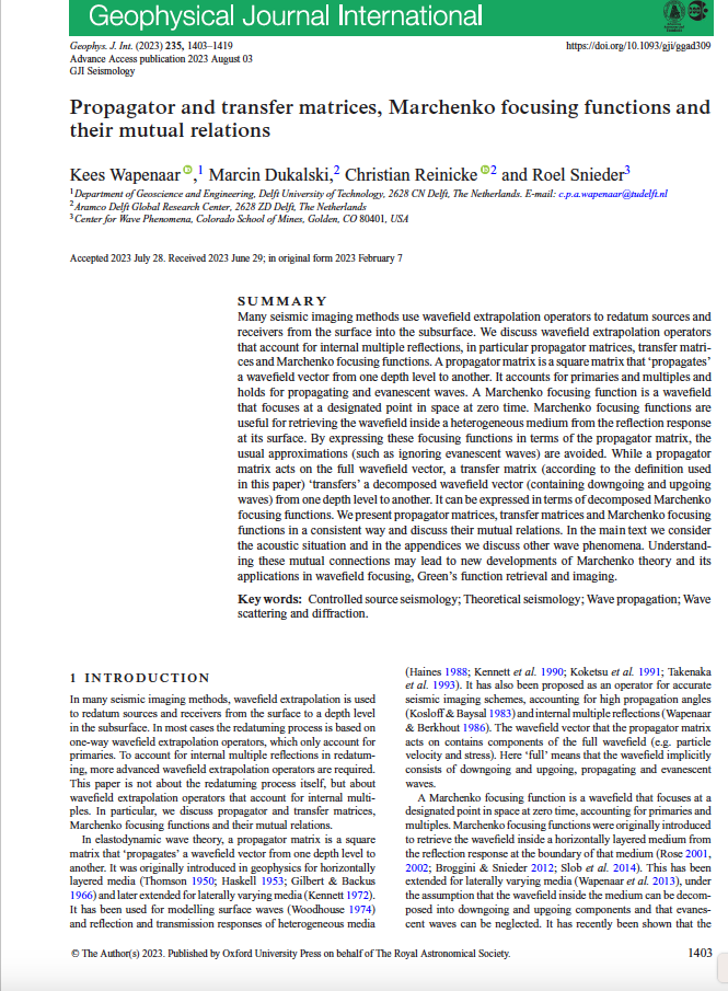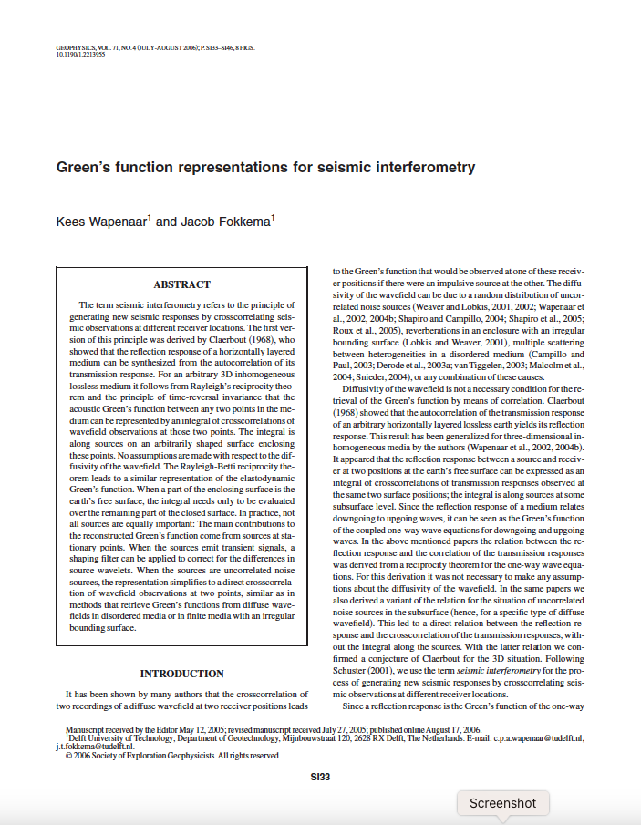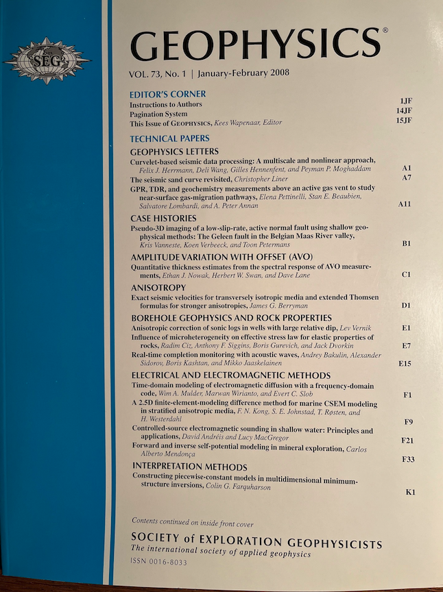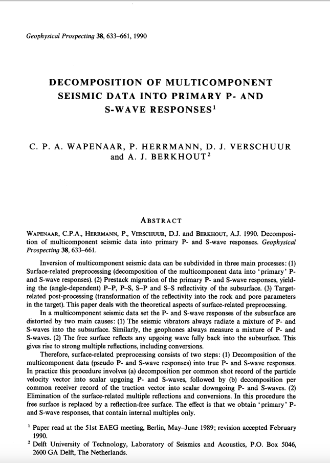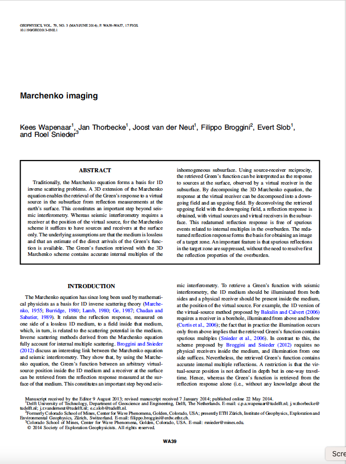 Publications250 journal papers (of which 90 as first author). List and papers.H-index: Google Scholar 70, Scopus 56, ISI 47. Book (as author): Elastic wave field extrapolation (Elsevier), 1989. pdf-file Book (as editor): Seismic interferometry (Society of Exploration Geophysicists), 2008. pdf-file Book (as editor): Geophysics Today (Society of Exploration Geophysicists), 2010.
